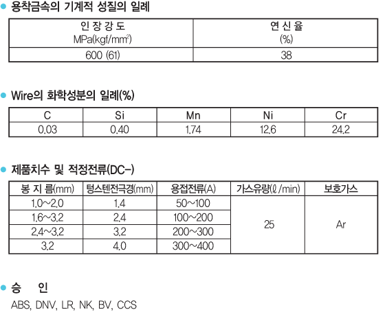 ④ 고온에서 크립 강도가 뛰어나기 때문에 보일러, 가스터빈 등의 용접에 적당합니다.